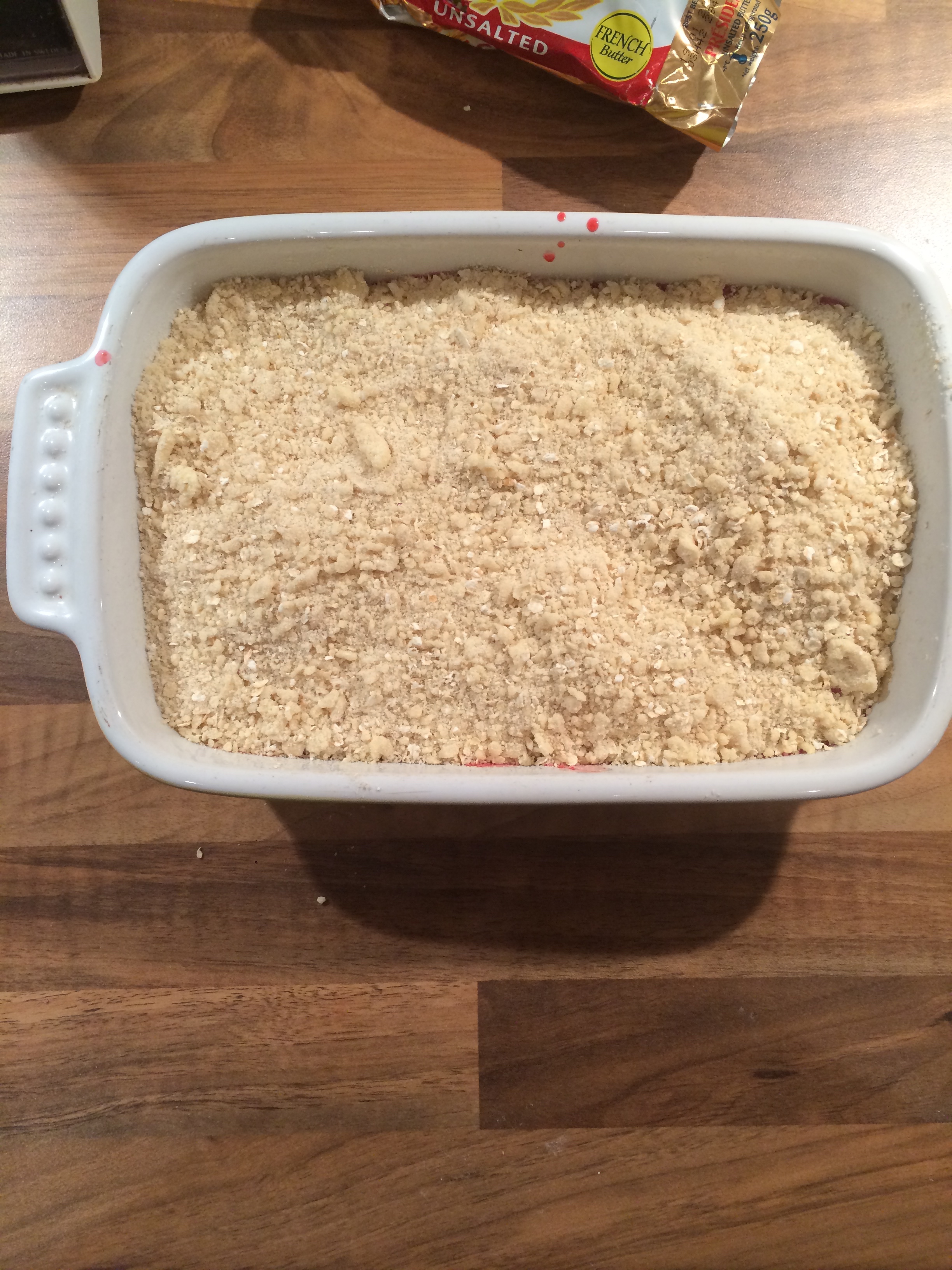 Using a spoon, cover the top evenly with the crumble mixture.