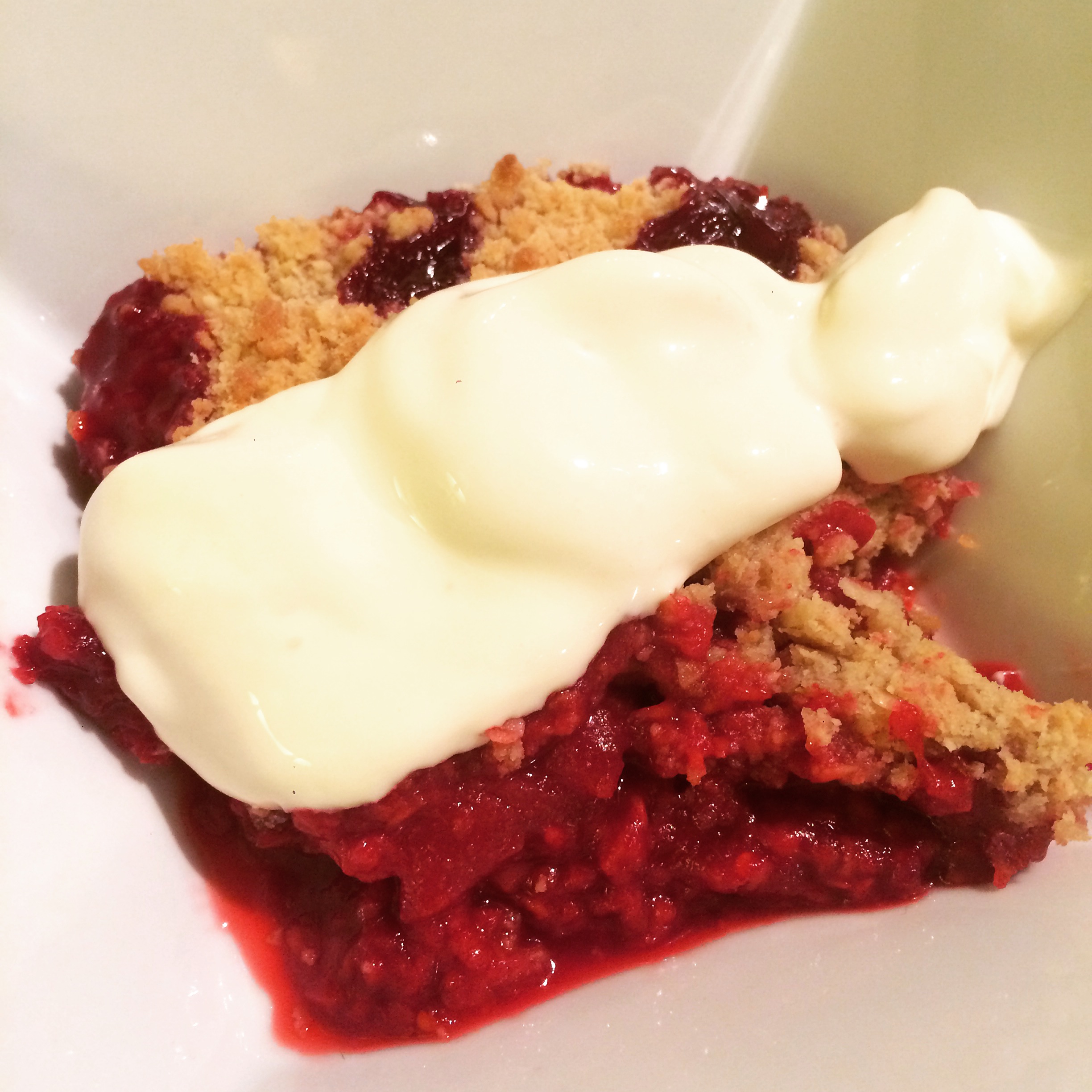 This is a Raspberry and Pear Crumble that I’ve been making for a few months now. It’s a good treat to have in the oven while you have dinner, ready to eat when you’re done with mains.