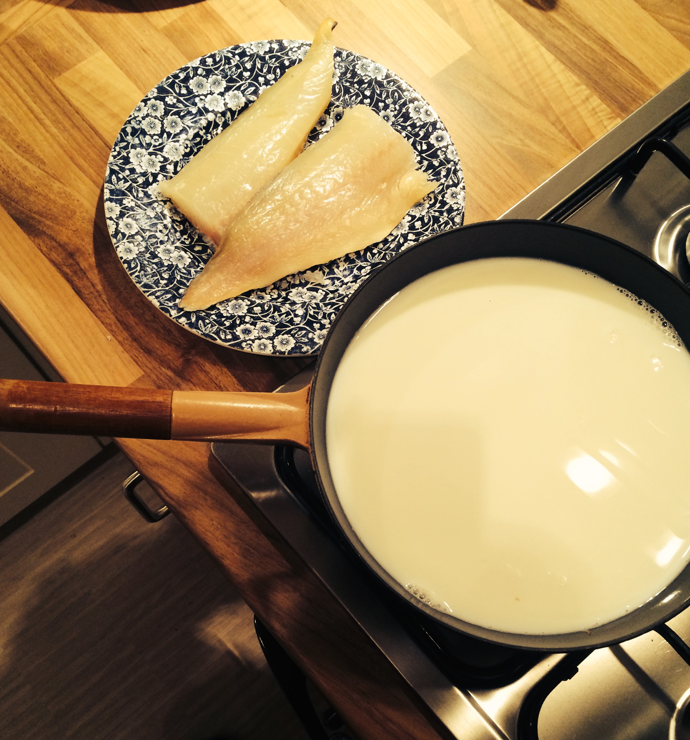 Poach for 4 and half minutes MAX or until the fish feels soft and crumbly. Remove from the milk and cover with foil. Leave to one side…