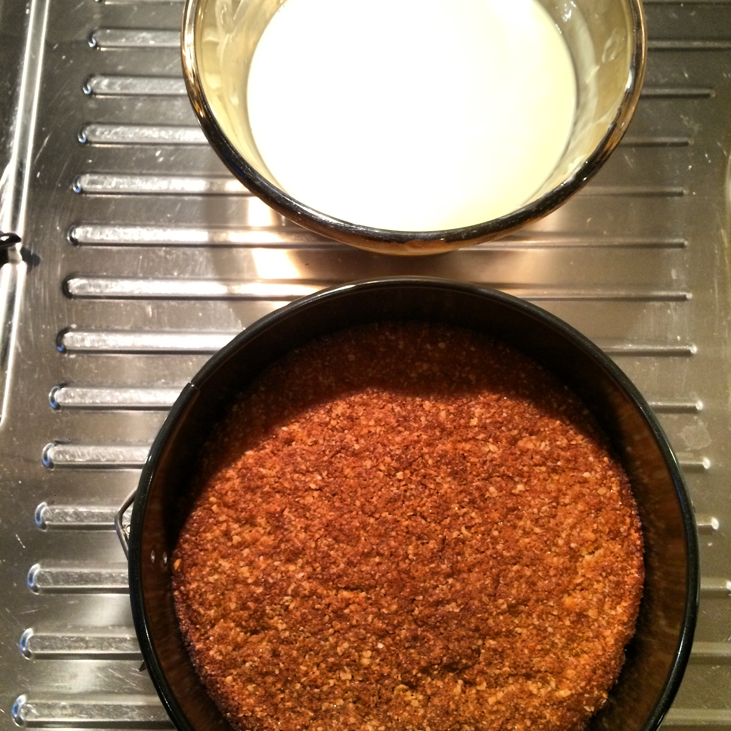 Remove the baking tin, complete with your biscuit base. Leave to cool at one side.