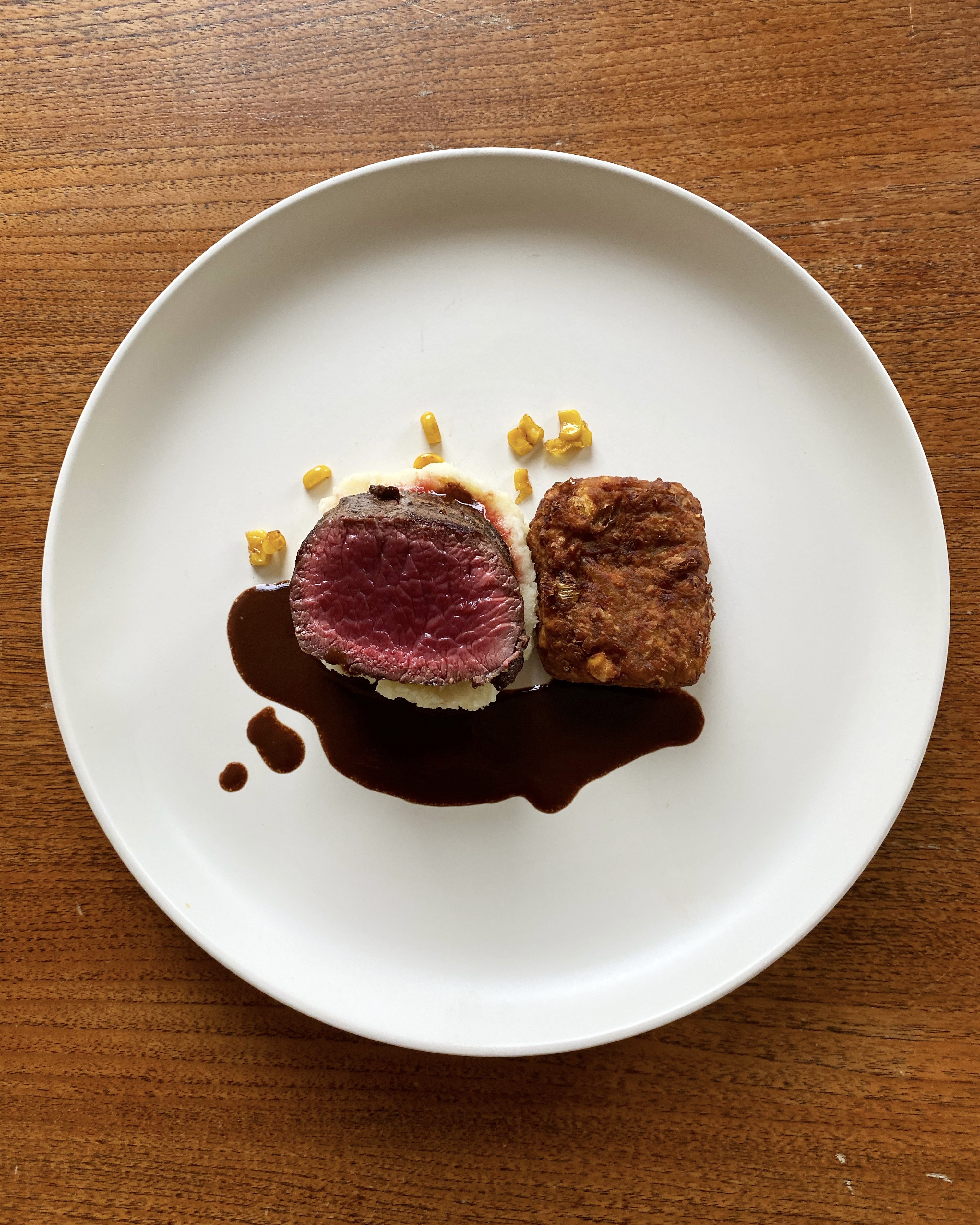 The first reiteration of this dish actually featured beef shin in the sauce, providing a slow-cooked alternative to a pan-fried cut, which also works wonderfully with the sauce.