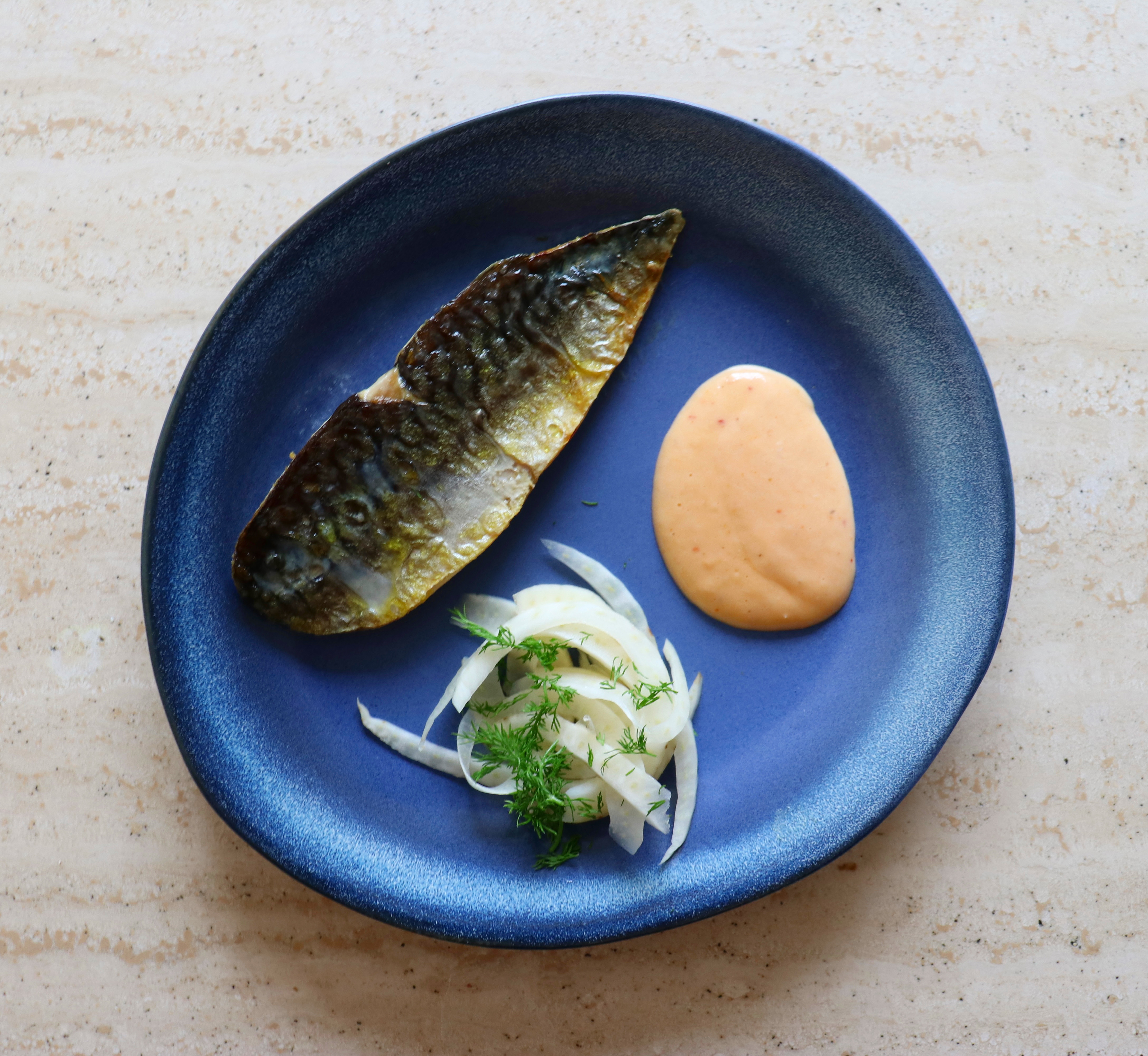 In what is a simpler dish this time, I’ve paired together mackerel, pickled fennel and a crab & n’duja mayonnaise.