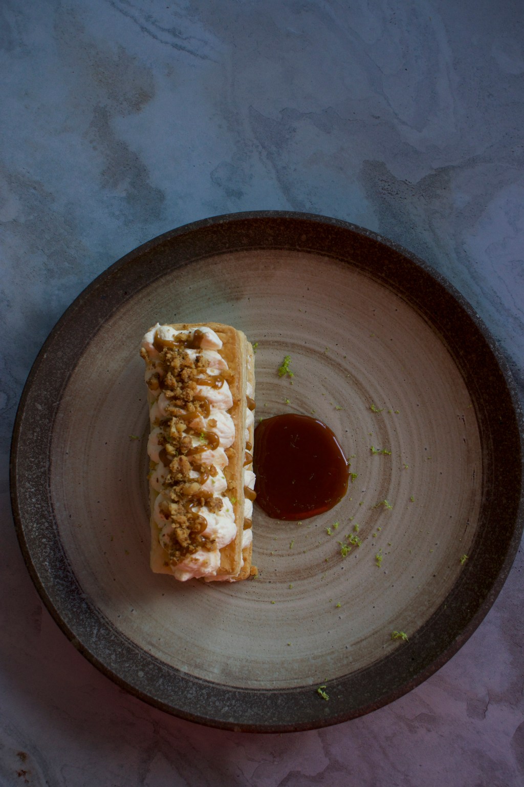 carrot & ginger chantilly stack, walnut praline, carrot caramel